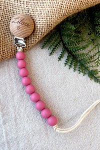 Chacune de nos attache-tutute est gravée dans notre atelier situé dans le sud de la France. L'attache tétine est compatible avec toutes les tétines qui sont équipées d'un embout ou d'un anneau : passer la boucle de l'attache-tétine dans l'anneau de la tétine, passer le bout de la tétine autour de l'élastique.